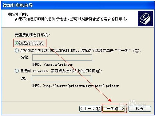 3.依次點擊“開始→設置→打印機”,在“打印機”窗口中,雙擊“添加打印機”。進入“添加打印機向導”窗口,點擊“下一步”按鈕。在“本地或網絡打印機”選擇界面中,選擇“網絡打印機”,然后點擊“下一步”按鈕。在“查找打印機”窗口中,直接點擊“下一步”按鈕。進入“瀏覽打印機”窗口,在“打印機”欄中輸入“\\print-hp\HP”,然后點擊“下一步”按鈕,向導會自動安裝打印機驅動程序。接著,在“默認打印機”界面中,選擇“是”。在“正在完成添加打印機向導”界面中,點擊“完成”按鈕,即可實現跨網段共享打印機。